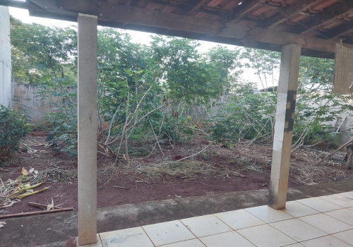 Casa com sala, dois dormitórios, cozinha, banheiro social, garagem, lavanderia, quintal. Forrada com laje e documentos ok.